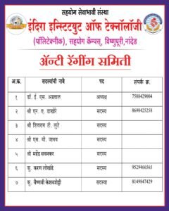 The Anti Ragging Committee (ARC) at Indira Institute of Technology is a dedicated body committed to upholding a ragging-free environment on campus, adhering to a strict zero-tolerance policy against ragging as mandated by the UGC and institutional guidelines.Established to ensure the safety and well-being of all students, the committee actively prevents and addresses instances of ragging through proactive measures such as awareness campaigns, posters, and one-on-one counseling sessions to foster a culture of respect and mutual support.