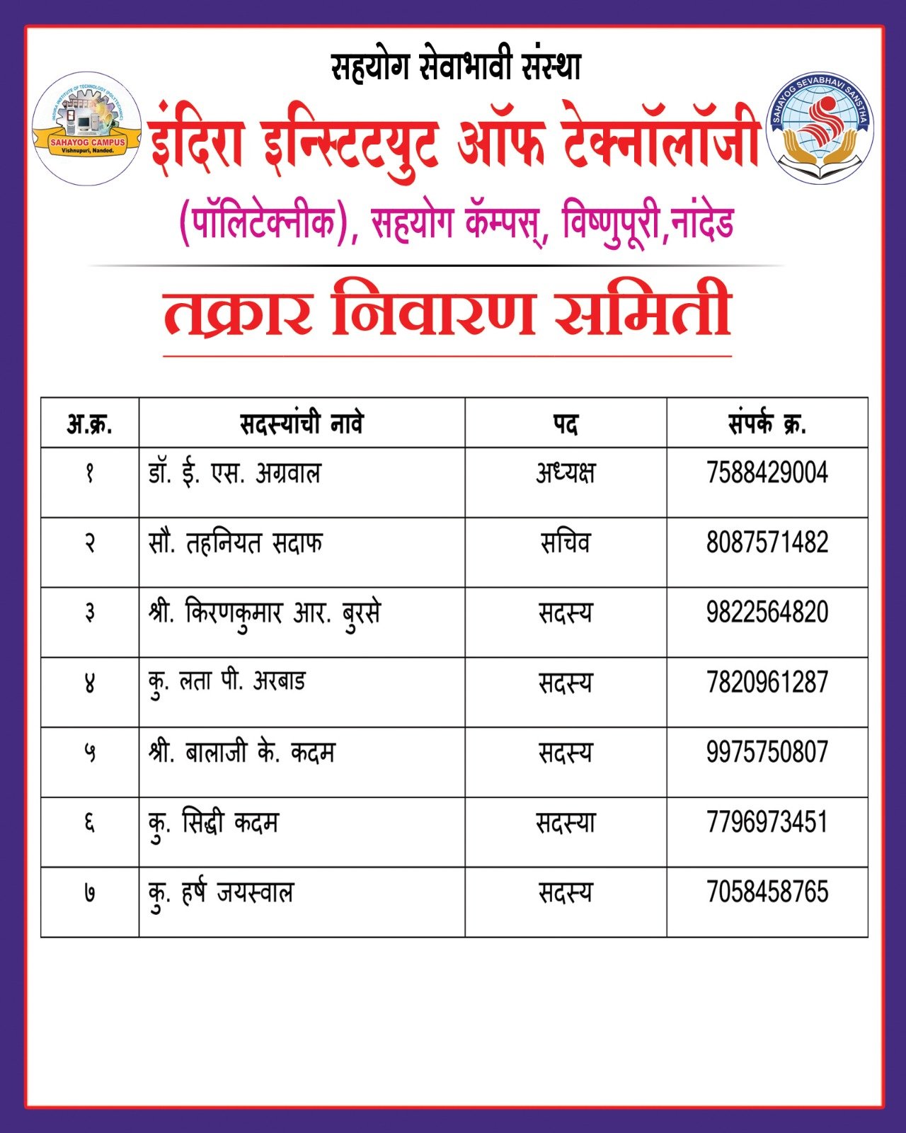 The Grievance Redressal Committee (GRC) at Indira Institute of Technology, established to foster a fair and inclusive academic environment, serves as a vital mechanism for addressing concerns raised by students and staff. This committee is committed to resolving grievances related to academic, administrative, or systemic issues through a structured and transparent process, ensuring that all complaints are heard, investigated, and resolved promptly