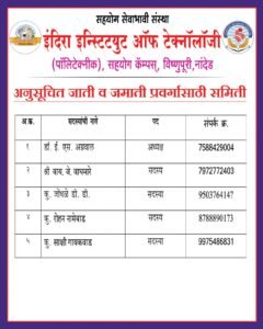 The SC/ST Welfare Committee at Indira Institute of Technology is a dedicated body established to promote the education and welfare of students and staff from Scheduled Castes and Scheduled Tribes, ensuring their academic and social equity through inclusive support systems.